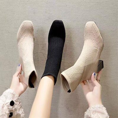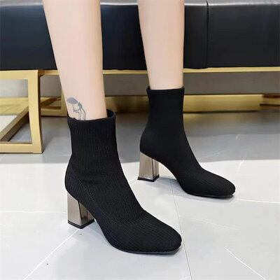 秋冬ファッション レディースショートブーツ ブーティ ワーク パーティー 太めヒール ニット7cm クラブ オシャレ靴 女 シューズ ブーツ 靴