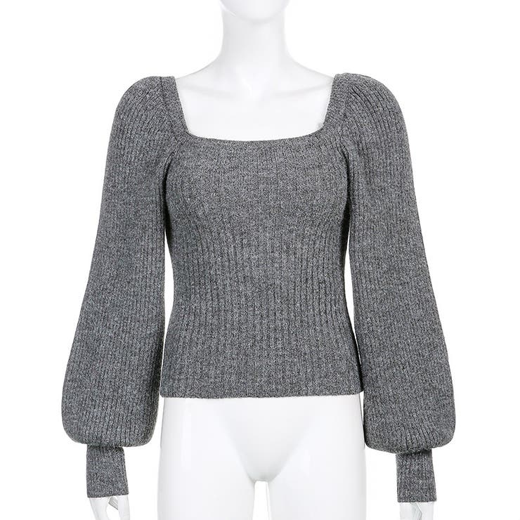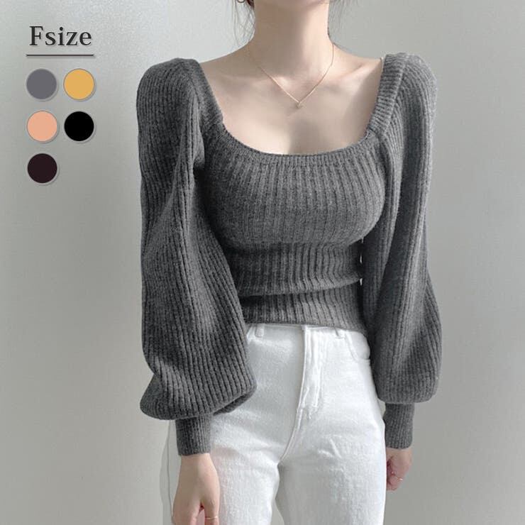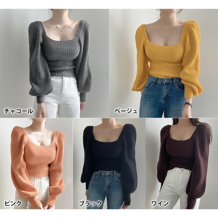 【日本倉庫即納】スクエアネックバルーンスリーブニット 韓国ファッション