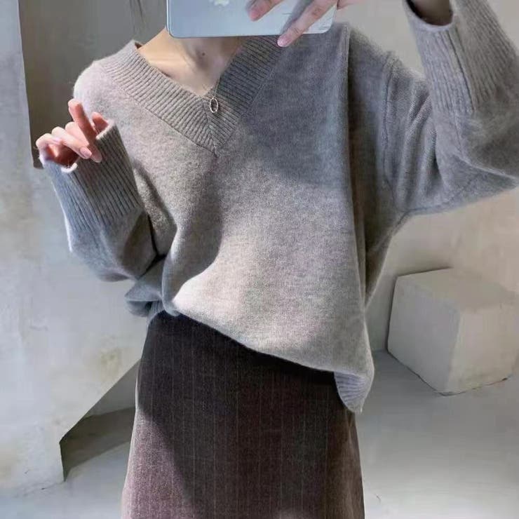 【日本倉庫即納】Vネックサイドスリットニット レディース トップス 韓国ファッション 2024秋冬新作