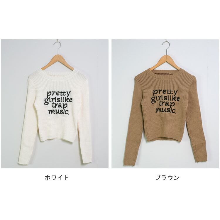 フロントロゴ ショート丈 リブニットトップス【即納】 レディース 韓国 プチプラ おしゃれ
