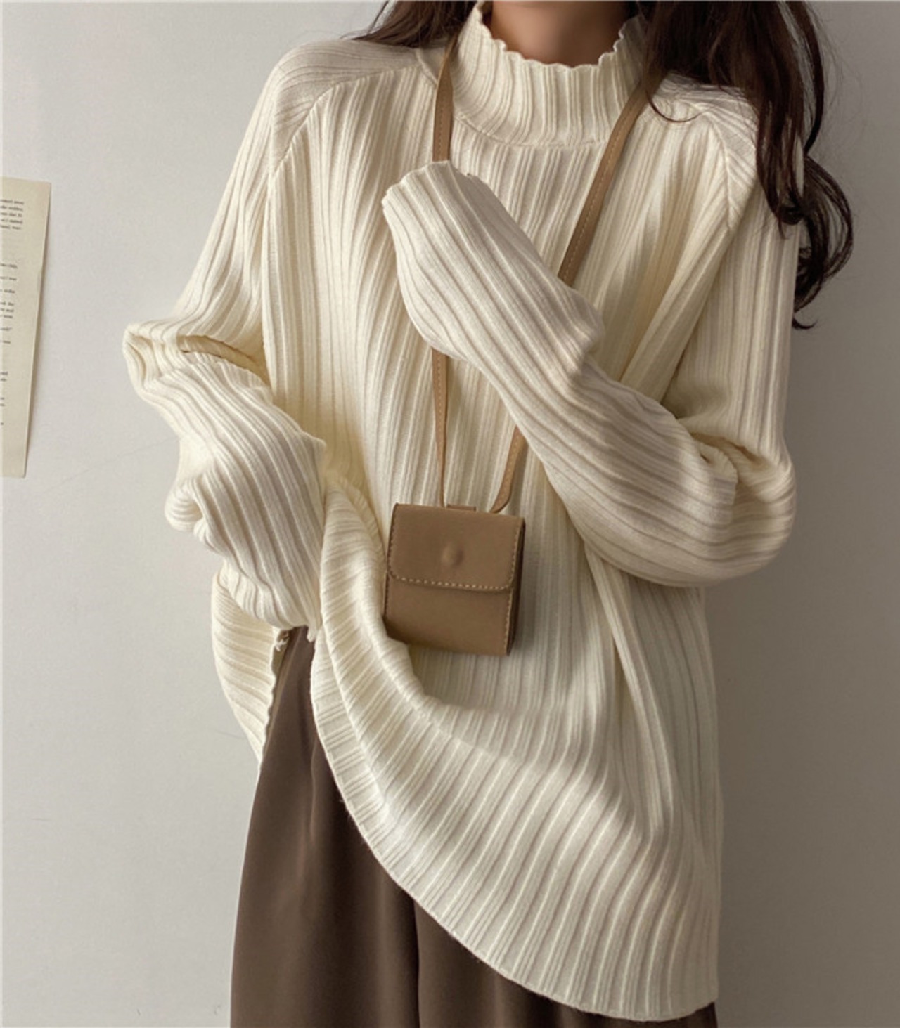 ハイネック 太リブ編み