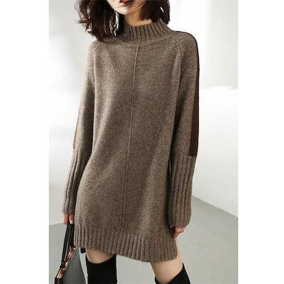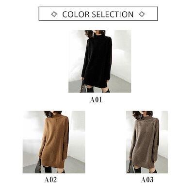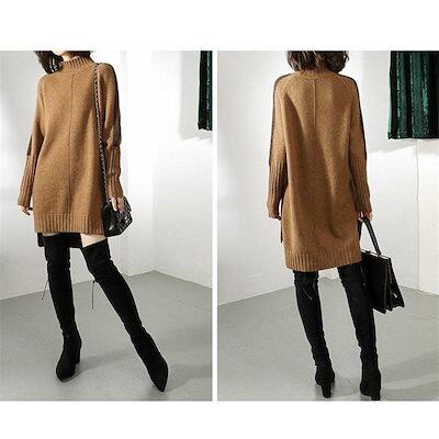 高級な質感 ニットワンピース レディース ワンピース 長袖 スリット チュニック ロング丈 ニットセーター トップス ゆったり 防寒 暖かい 体型カバー 秋冬