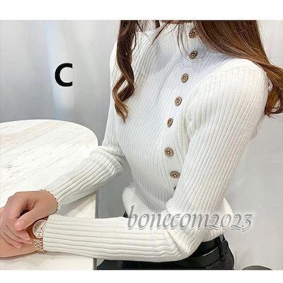 きれい目 トップス ハイネック おしゃれ 春ファッション 大人 スリム 薄手 斜めボタン プルオーバー 秋冬服 細身 レディース 新作 ニットセーター 伸縮性 長袖