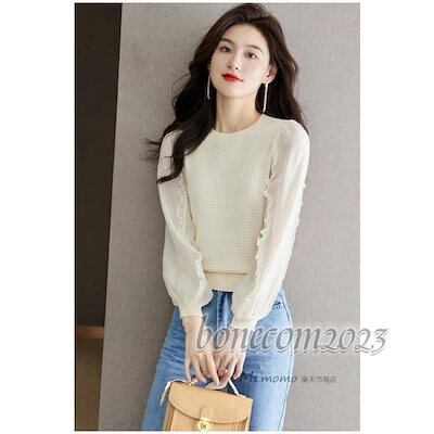 ニットトップス 秋冬代長袖セーター ショット丈セーター ゆったりプルオーバー フレア切り替え オシャレ韓国風 大人ニットインナー レディース
