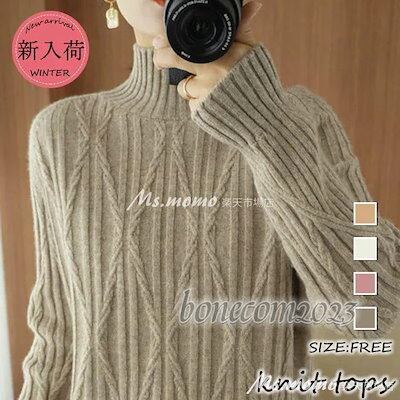 厚手 無地 ゆったりプルオーバー ショット丈セーター 秋冬代長袖セーター オシャレ ニットトップス レディース ハイネック 大人ニットインナー