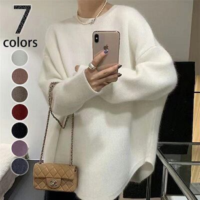 ニットセーター レディース 長袖 秋 冬 ふわふわ ラウンドヘム 丸首 クルーネック もこもこ モヘア 流行 きれいめ 上品 カジュアル プチプラ 韓国ファッション