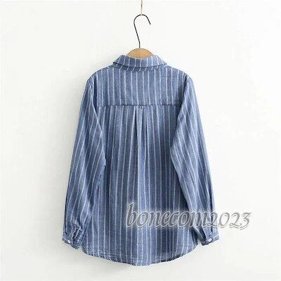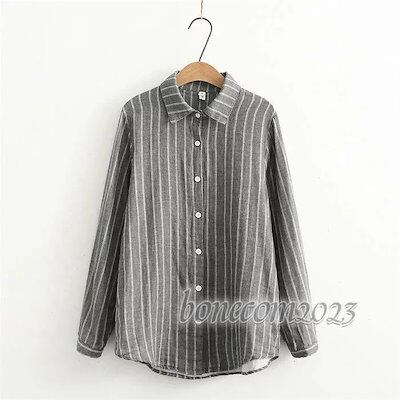 ストライプ ブラウス コットン 長袖 秋冬 重ガーゼ レディース きれいめ 冬 リラックス 秋 シャツ 綿 カジュアル ストライプ お洒落 トップス シャツブラウス