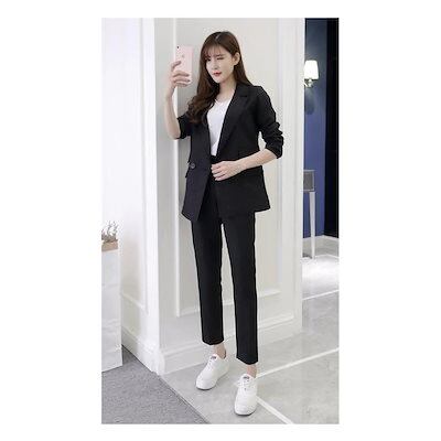 秋 冬 レディーススーツセット ファッション新生活応援ビジネス特集 通勤セットアップ スーツ 長袖 2点セット ジャケット 無地 パンツスーツ 大人 ウエストゴム ビジネス フォーマル オフィス カジ | gizshop