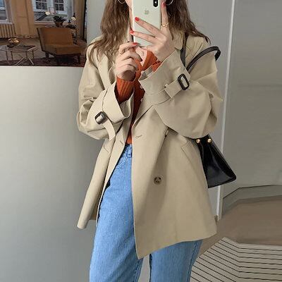 アウター トレンチコートショット丈 トレンチコート 通勤 通学 春秋 小柄 ジャケット 秋 カーディガン トップスジャケット レディース 韓国ファッション