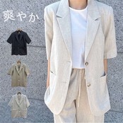 テーラードジャケット レディース アウター 半袖 七分袖 夏 春 ジャケット スーツ ライトアウター 夏コート 夏服 ブレザー 半袖ジャケット カーディガン 無地 ベーシック 涼しい ゆったり ゆる感 | gizshop