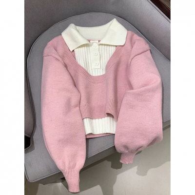 2024秋の新作スーツ韓国系着こなし学院風ニット襟トップスセーター2点セットだるい風