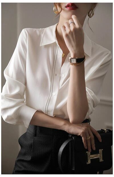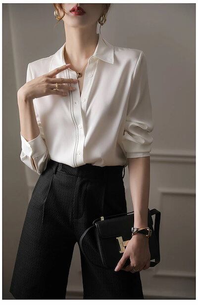 とろみブラウス レディース 長袖 とろみシャツ トップス シャツ スーツ インナー 着痩せ 大人 可愛い 長袖 おしゃれ ワイシャツ 白 ホワイト きれいめ 春 秋 冬