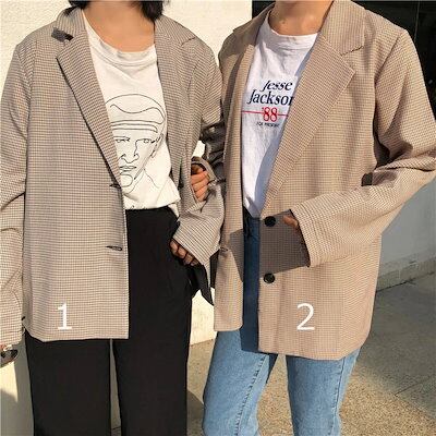 テーラードジャケット レディース ジャケット 薄手 アウター 長袖 スーツ サマースーツ トップス チェック柄 無地 カジュアル 通勤 ゆったり
