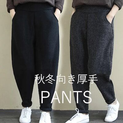 パンツレディース秋冬キレイめロングパンツ裏ボア裏起毛サルエルパンツ冬物コクーンパンツロング丈ウエストゴムサイドポケットカジュアルゆったりボトムス秋冬黒/グレーイージーパンツドッキングアシンメトリー | gizshop