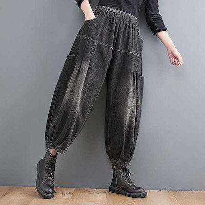 【急速出荷】冬新品 裏起毛 サルエルパンツ ゴム テーパーパンツ デニムパンツ 大きいサイズ 体型カバー レディース ジーンズ メガ割