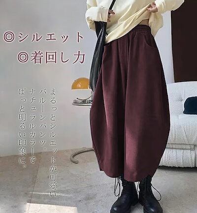 【2024新入荷】バルーンパンツ レディース コクーンパンツ 秋冬 パンツ ワイドパンツ ロング ウエストゴム ポケット付き 美脚 サルエルパンツ ボトムス ゆったり