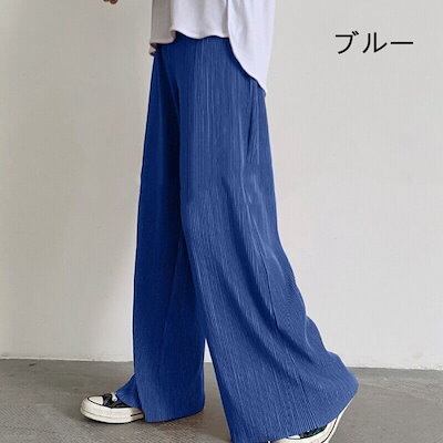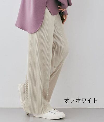 切れるパンツ プリーツパンツ 光沢感 夏 縦ライン 高見え リブパンツ プリーツ パンツ ワイドパンツ レディース セルフカット 裾カットOK ウエストゴム リラックスパンツ ボトムス 春 秋冬 体型 | gizshop