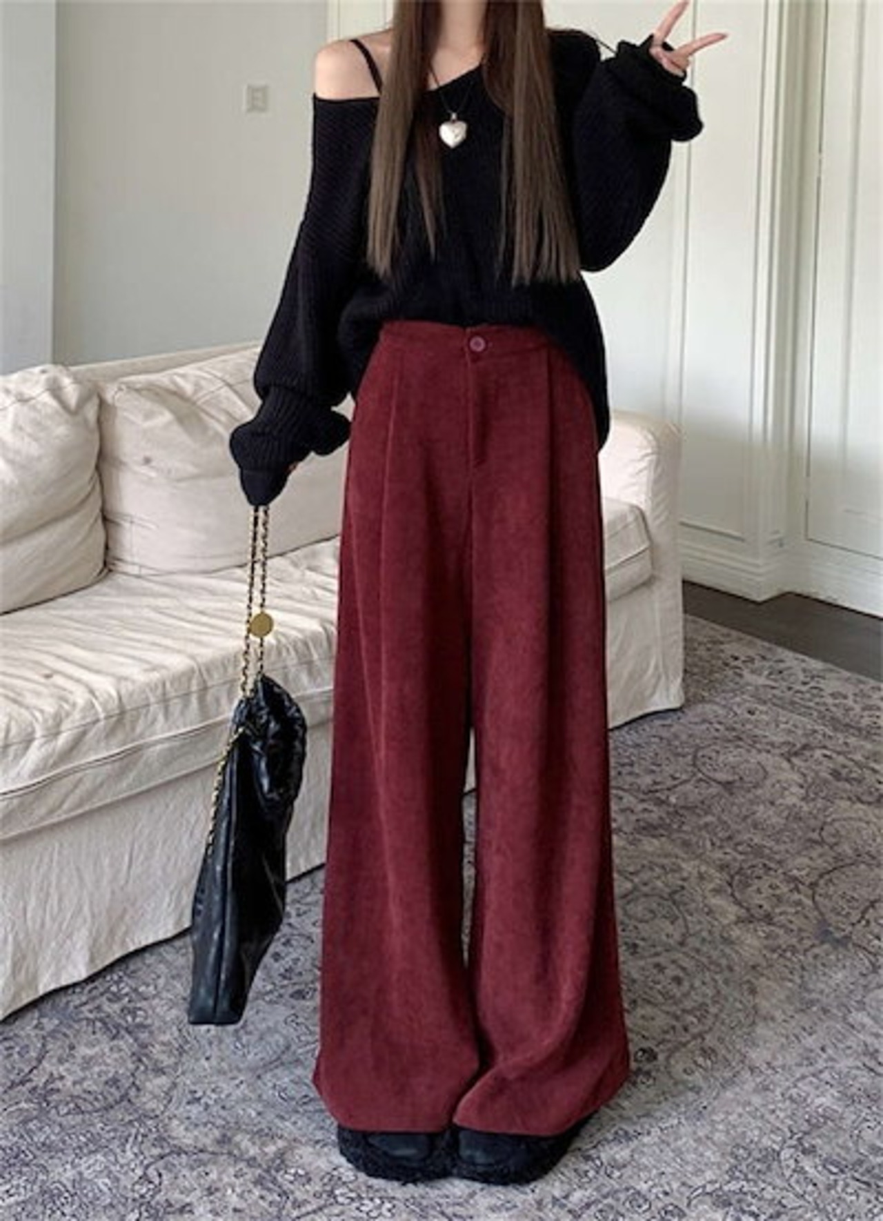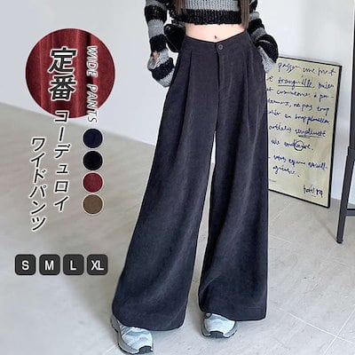 ポケット ゆったり 防寒 ワイドパンツ ロングパンツ 体型カバー 中厚手 コーデュロイ 履きやすい ストレートパンツ ガチョウパンツ レディース 秋冬 無地 ボトムス ロング丈 ゆったり カジュアル | gizshop