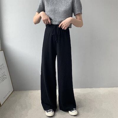 入園式 ストレートパンツ レディース リブパンツ ゆるパンツ ワイドパンツ 冬 ニットパンツ プリーツパンツ 春 秋 送料無料 リブ 楽ちん ガウチョ ウエストゴム ニット 通勤 卒業式 リラックス | gizshop