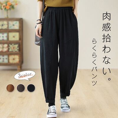 ゆったり 秋冬 秋 ロングパンツ 冬 ウエストゴム コットン カジュアル 大きいサイズ 着痩せ ポケット付き ロング丈 ボトムス パンツ サルエルパンツ レディース 綿 ワイドパンツ 美脚 ズボン テ