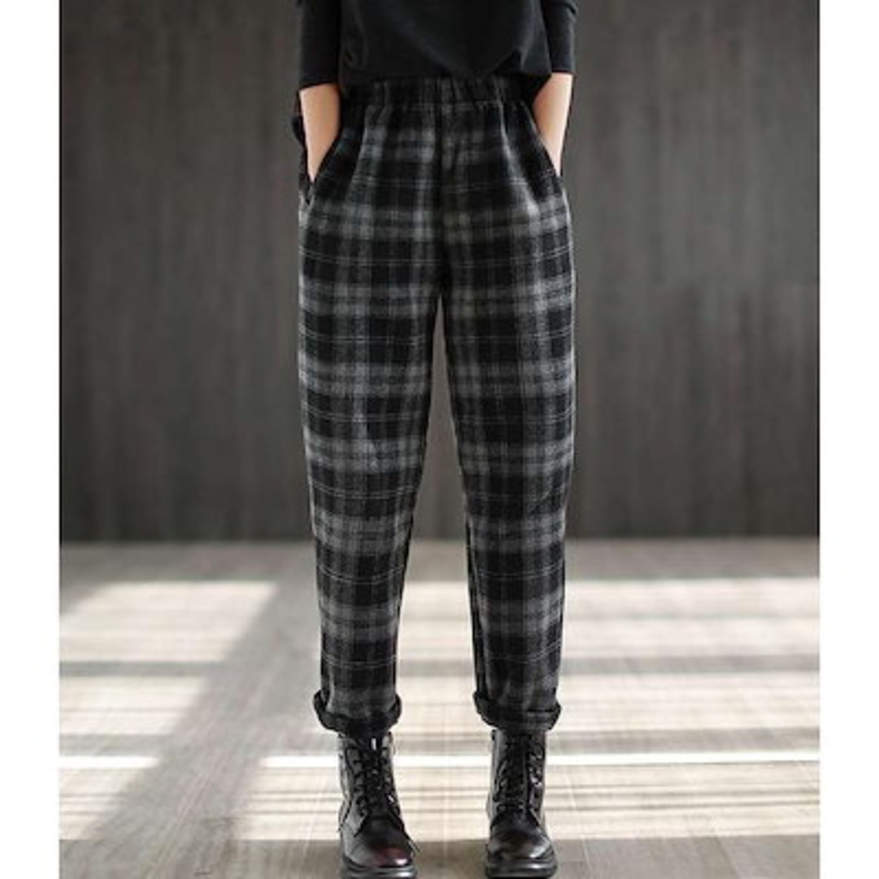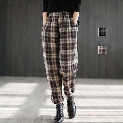 ズボンチェック柄ロング丈パンツサルエルパンツリラックスパンツロング丈ウエストゴム起毛レディースボトムス