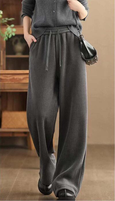 ストレートパンツ ゆったり パンツ 通勤ボトムス ボトムス ワイド ゆったり リブパンツ ウェストゴム 着回し ワイドパンツ レディース ロング丈 無地 シンプル カジュアル コーデュロイ 暖