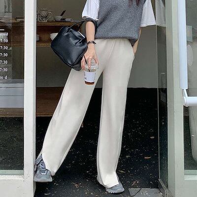 スウェットパンツ ワイド レディース ハイウエスト 部屋着 無地 ロング丈 イージーパンツ ウエストゴム スポーツ ワイドパンツ ボトムス スリット ストレート 防寒 パンツ スウェット | gizshop
