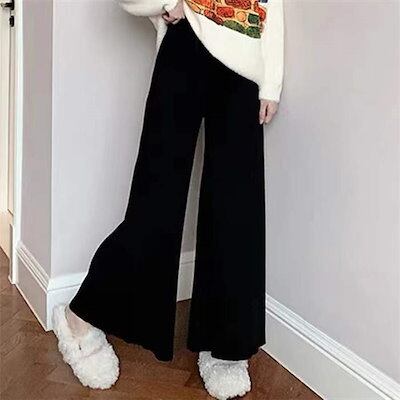ベージュ レディース ボトムス リラックス フェミニン ウエストゴム ふわふわ おしゃれ 防寒 きれいめ 暖か シンプル 着回し 着?せ ズボン ブルー ロング 体型隠し ニット パンツ ワイド