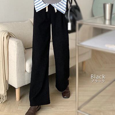 裏ボア ハイウエスト ロングパンツ ゆったり レディース ボアパンツ あったかいパンツ ワイドパンツ ズボン コーデュロイ 裏起毛パンツ あったかい ウエストゴム パンツ 裏起毛 無地 ストレー | gizshop