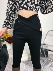 スキニー パンツ ロング丈 タイト スリム 黒 無地 ハイウエスト Vライン 個性的 ストレッチ 伸縮 かっこいい 細身 パンツ ズボン ボトムス レディース ブラックデニム ラフ クール いい女 春 | gizshop