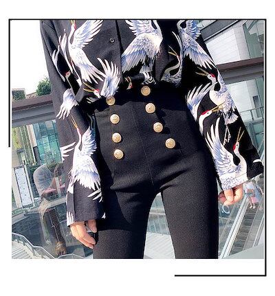 デニム パンツ レディース スリム おしゃれ 大きいサイズ S M L XL ダブルボタン クラシカル ジッパー ジップ メタルボタン スキニーパンツ ブラックデニム タイト ボトムス ズボン カジュ | gizshop