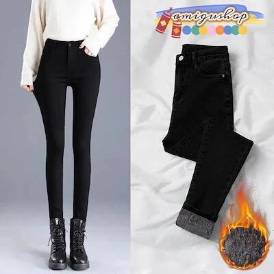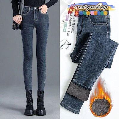 秋冬 防寒 ジーンズ ボトムス スリム レディース スキニーデニム 裏起毛 暖か 着痩せ ロング 美脚 デニムパンツ ジーパン ストレッチ