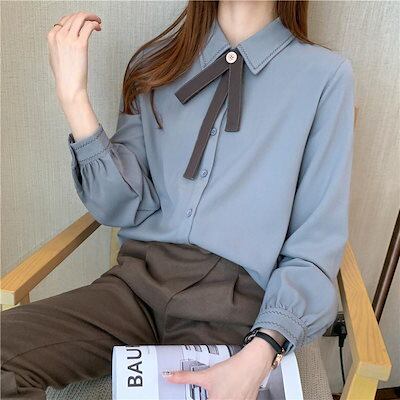 2024 秋先取 ブラウス 今っぽシアーシャツ新作厚手の研ぎ毛シャツ女性長袖開襟 レトロシャツアウター トップス レディース 韓国ファッション