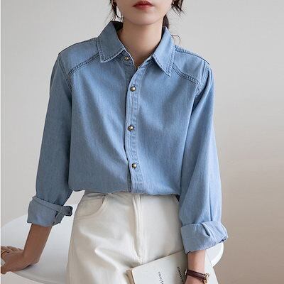 2024 秋先取 ブラウス 今っぽシアーシャツ 長袖 ブルーデニムシャツジャケット女性との 潮 ファッション カーディガン オフィス シャツ トップス レディース 韓国ファッション | gizshop