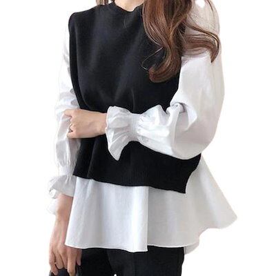 2024 秋先取 ブラウス 今っぽシアーシャツバブーシュセットアップ大きいサイズ韓版新款百搭 新しいデザインニットベスト2枚セット長袖のシャツ涼しく楽ちんセットアップ トップス レディース 韓国ファ | gizshop