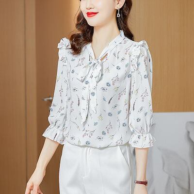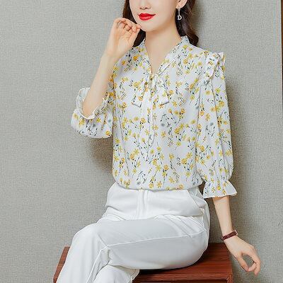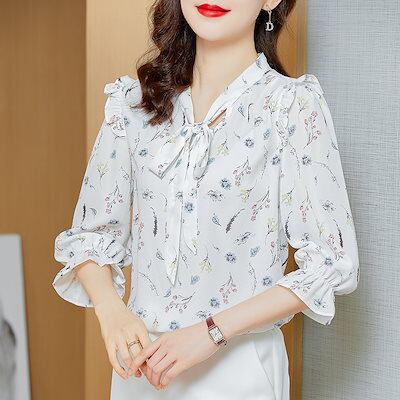 今っぽシアーシャツ レディースシャツ 春秋の新作 韓国ファッション 花柄半袖 Tシャツ シャツ シフォンの上着