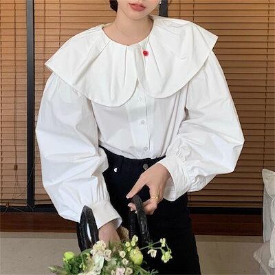 ブラウス レディース 韓国系ins 復古 ベビーカラー シャツ 長袖シャツ