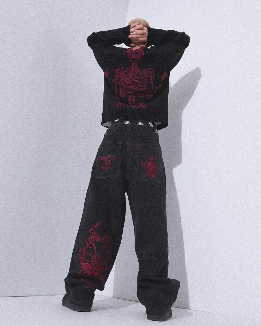メンズヒップホップジーンズ,スカル刺embroidery,ウォッシュドバギーデニムパンツ,カジュアル,ルーズフィット,ワイドレッグ,ストリートウェア,y2k,新品 y2k ボトムス T240901112045_03 | gizshop