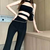 女性用ブラックフレアパンツ,ハイウエストストリートウェア,カジュアル,スプリット,オールマッチy2kダイヤモンド,韓国ファッション,春秋,新品 y2k ボトムス T240901121350_01 | gizshop