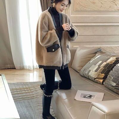 小香風 フェイクミンク アウター 秋冬新しい ジャケット 体型カバー 高級感 レディース 毛皮コート 羽織り トップス
