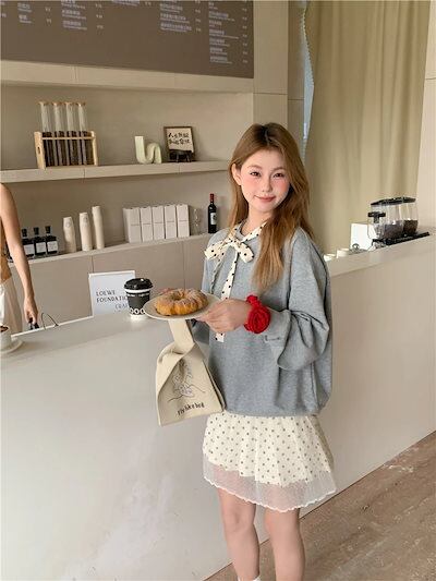 スウェット 2024秋冬トップス 長袖 ラウンドネック スカート ミニ丈 ドット柄 ゆったり 秋 白 黒 おしゃれ かわいい ガーリー キュート 甘め 韓国ファッション レディース お出かけ | gizshop