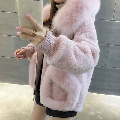秋冬 フェイク キツネの毛 毛皮コート 韓国ファッション フード付きアウター レディース ショート フェイクファー コート