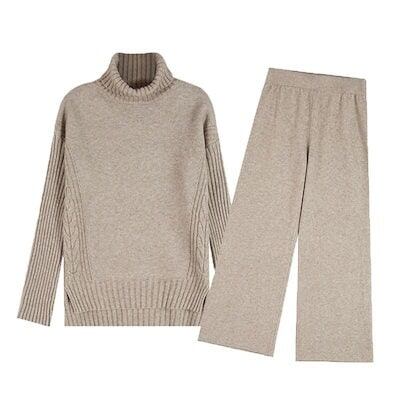 冬 ニット二点セット 怠惰な風 セットアップ レディース ニットパンツ/トップス 韓国ファッション 気質 セット/セーター/ワイドパンツ