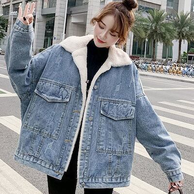 レディース デニム アウター 秋冬 ゆったり 韓国版 カジュアル 百掛け ins トップス 裏起毛 厚手