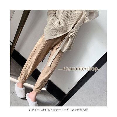 ニットパンツ レディース テーパードパンツ 厚手ニット 9分丈 レトロ ケーブル編み サルエルパンツ ニット ボトムス ウエストゴム 秋冬 ズボン