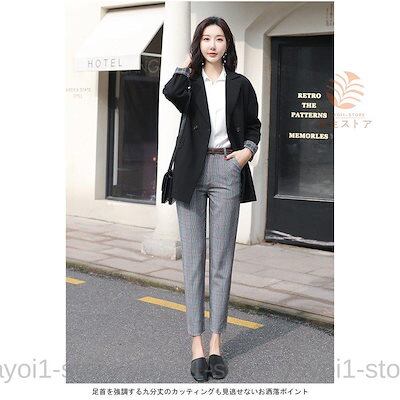 テーパードパンツ グレンチェック レディース スラックス チェック柄 パンツ 九分丈 女性 スーツパンツ レトロ 通勤 お洒落 春秋 夏