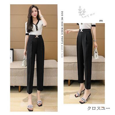 テーパードパンツ レディース ボトムス スラックス 無地 九分丈 ビジネス カジュアル 体型カバー 秋服 結婚式 卒業式 おしゃれ ストレート 着痩せ
