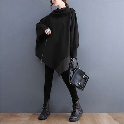 アシンメトリー パーカー レディース 秋冬 パーカーワンピース チュニック 大きめ ロングパーカー トレーナー ビッグパーカー スウェット アシンメトリーパーカ ゆったり ドルマンスリーブ 無地 韓国