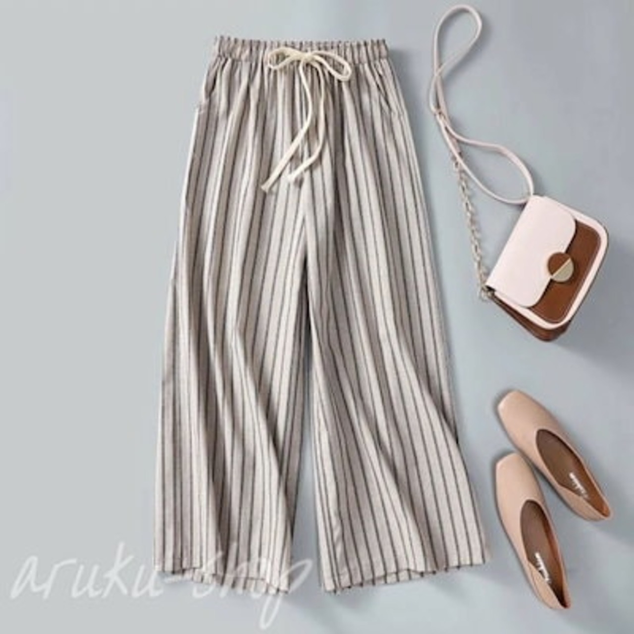 ワイドパンツ リネンパンツ ウエストゴム フレアパンツ ゆったり レディース バギーパンツ ストライプ リネン パンツ 美脚効果 夏 カジュアルパンツ ナチュラル 体型カバー