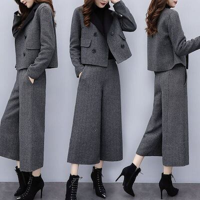 スーツ パンツスーツ セットアップ パンツ ジャケット スラックス ストレート レディース バギー 体型カバー ゆったり 通勤 エレガント シンプル フォーマル ポリエステル 厚手 7分丈 長袖 春秋 | gizshop